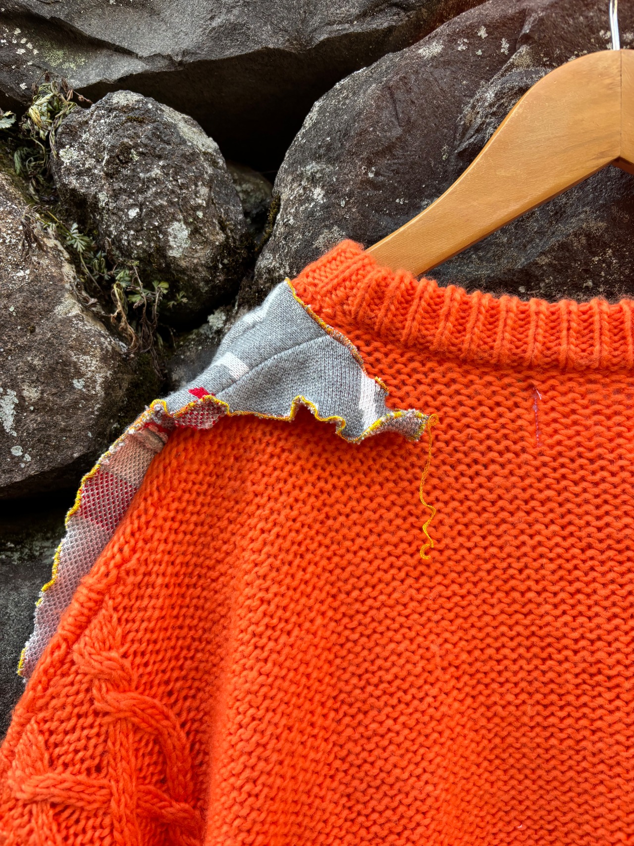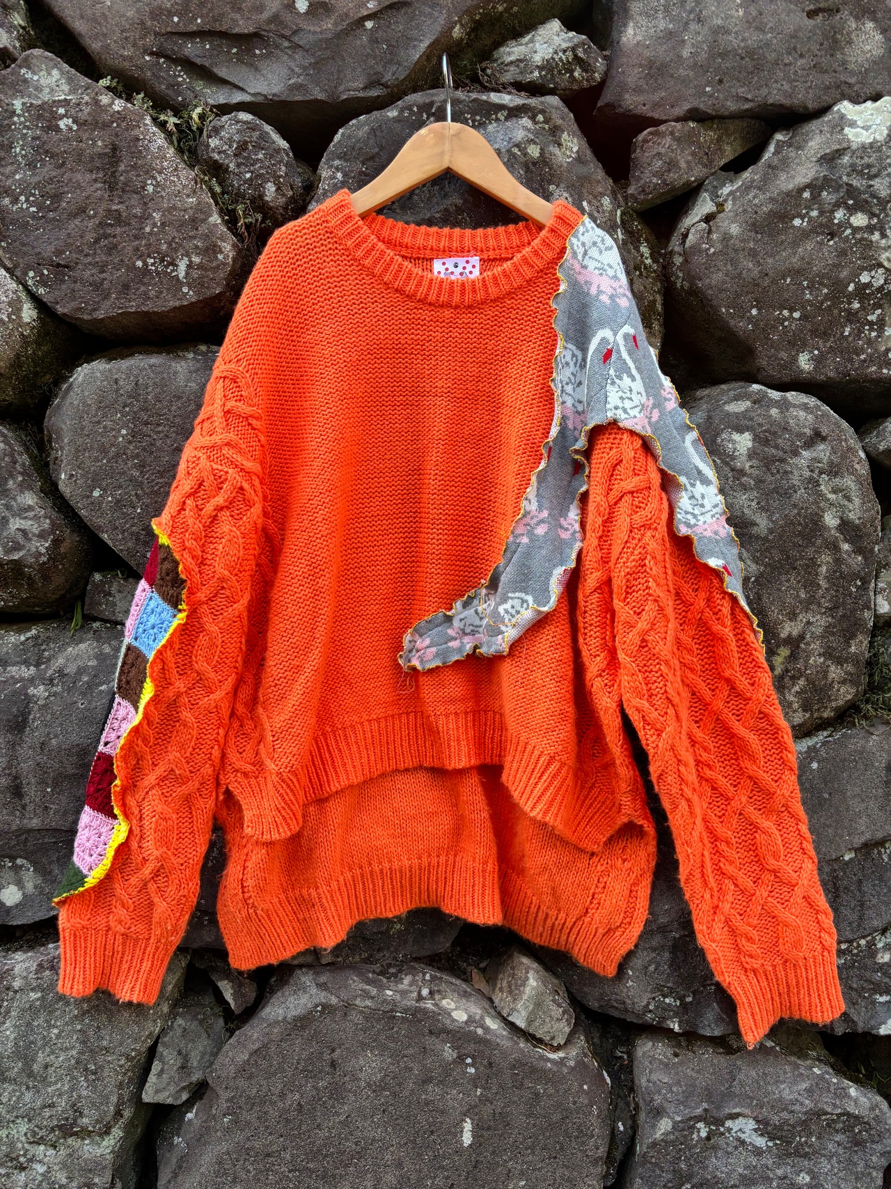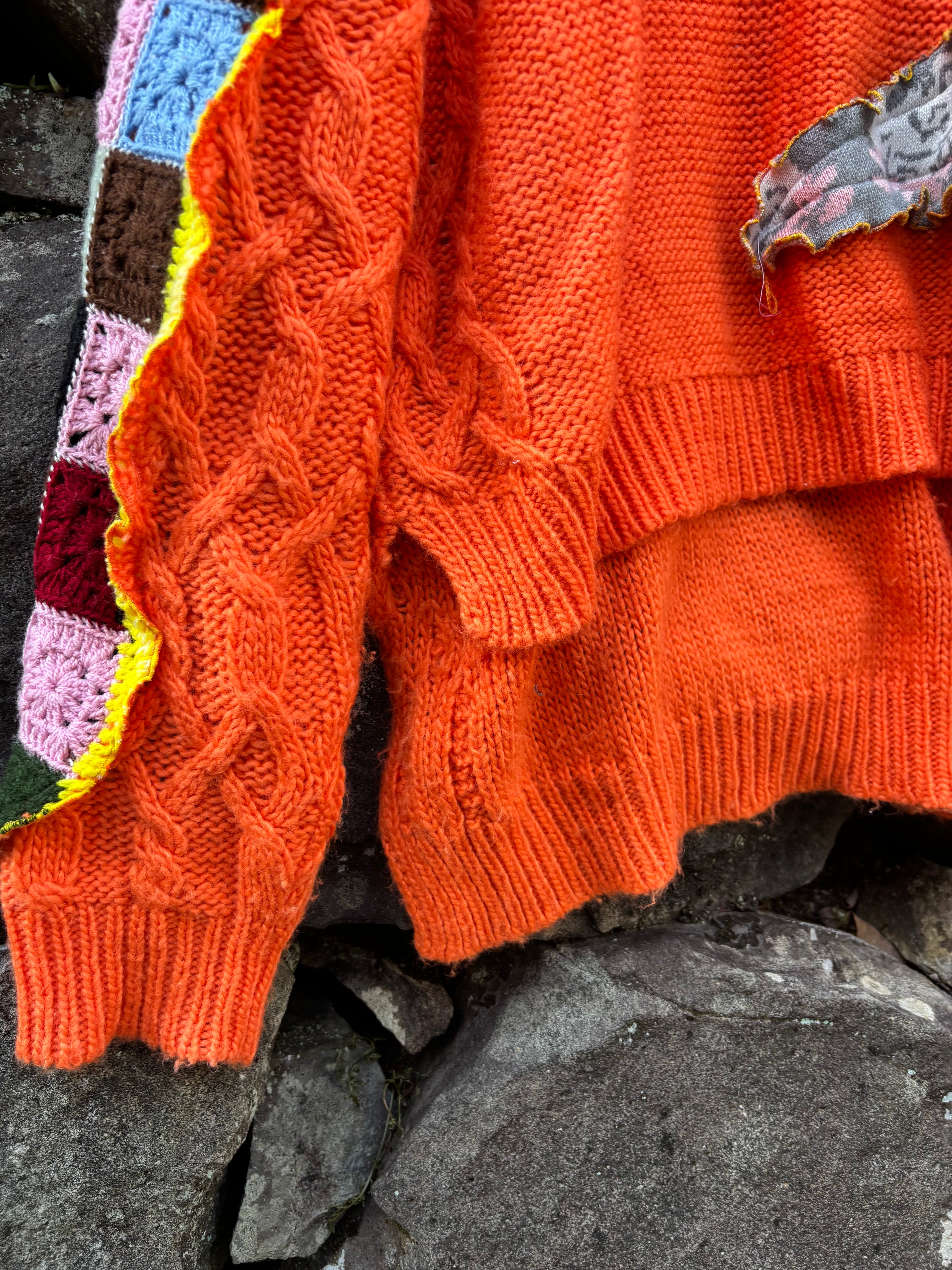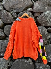 機能として存在するロック部分を、あえて表に残し、異なるニットを繋ぎ直すことで再構築しています。
