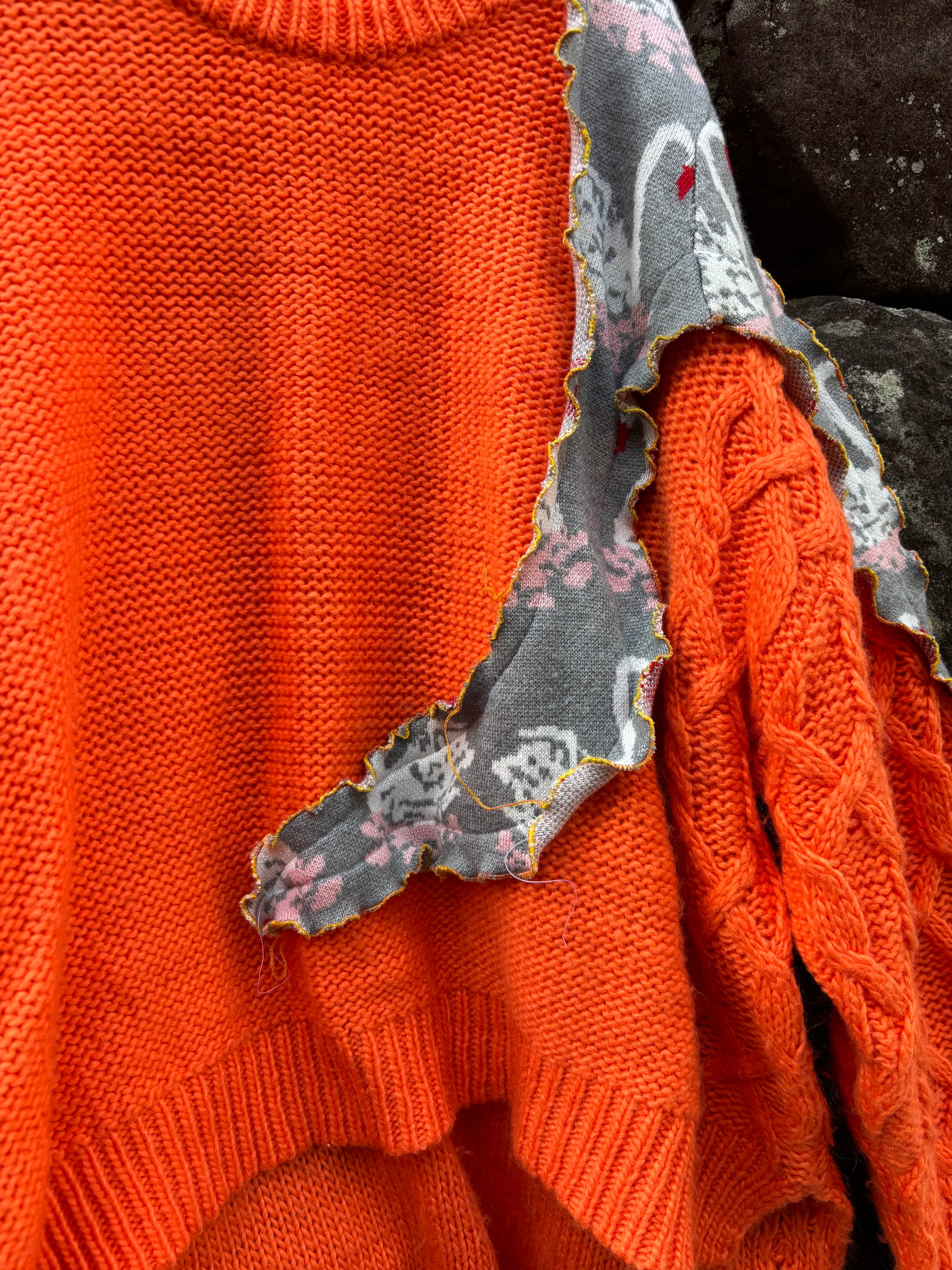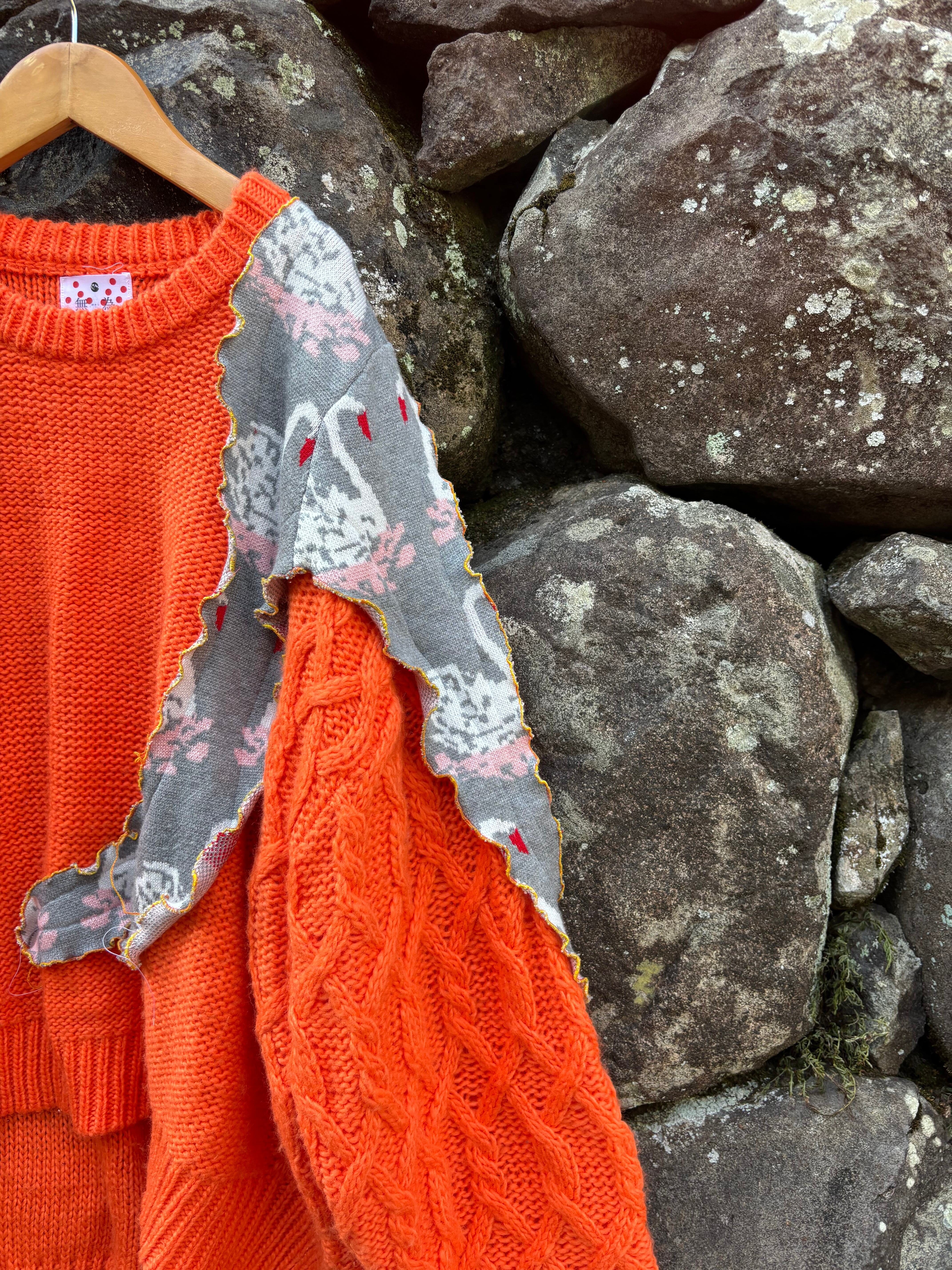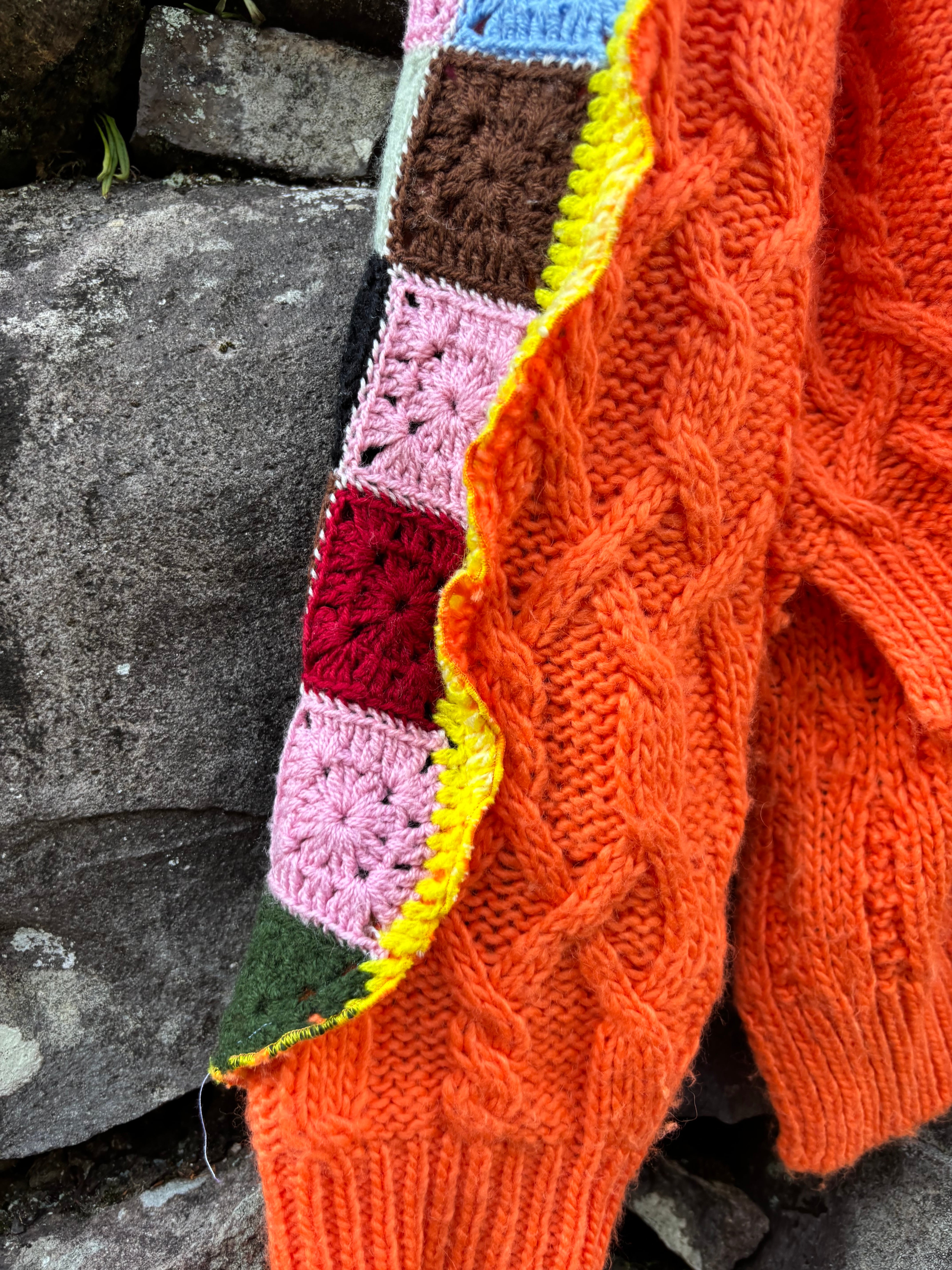 機能として存在するロック部分を、あえて表に残し、異なるニットを繋ぎ直すことで再構築しています。
