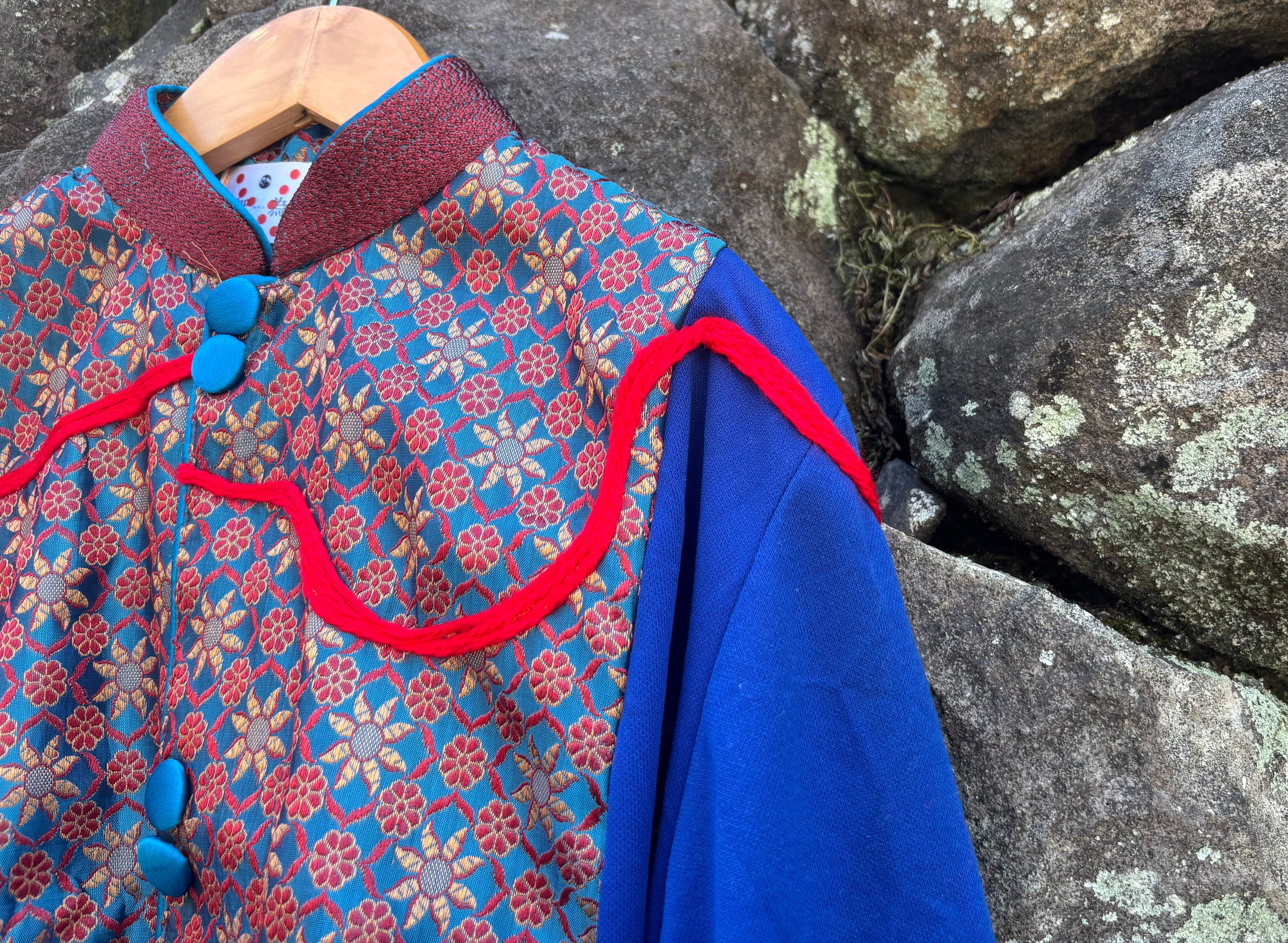 その青の流れの中に、赤を巡らせた一点です。